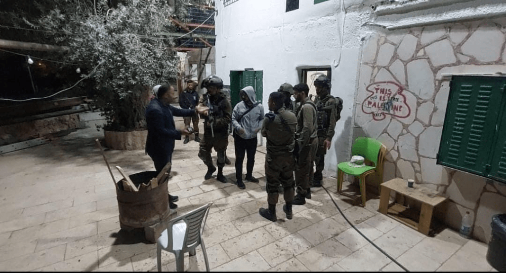 Issa è stato arrestato nel centro dell’associazione YAS (acronimo in inglese per Giovani contro gli insediamenti) fondata nel 2006, e dove da allora risiede, per contrastare, con le armi della nonviolenza e della disobbedienza civile, le aggressioni impunite dei coloni e dei soldati, e il tentativo sionista di rimozione e sostituzione dell’identità palestinese da Hebron. Pulizia etnica come mezzo indiscriminato di espansione da più di sette decenni. Il centro, chiamato in arabo Beit Sumud, casa della fermezza, della resistenza irremovibile, si erge incastrato tra gli ulivi e la discarica del quartiere di Tel Rumeida, o Jabal al-Rahma, letteralmente monte-della-misericordia,che i coloni chiamano Tel Hebron, secondo l’abituale uso di rinominare in ebraico il sostrato arabo-palestinese della città contesa che, secondo la tradizione, ospita la tomba del patriarca Abramo, capostipite comune dell’ebraismo, del cristianesimo e dell’islam. Hevron, in ebraico, Al-Khalil in arabo: l’amico. Ironica definizione per una delle aree più dense di fanatismi sionisti ultraortodossi e giornalmente colpite dagli assalti dei coloni contro ciò che resta della nativa popolazione palestinese. Delle 500 famiglie che in origine abitavano il quartiere, ne restano oggi poche decine appena. Aggressioni fisiche, schiaffi e pugni, inseguimenti con coltelli; lanci di pietre e bottiglie di vetro, urine, quando non acidi; incendi appiccati agli uliveti e alle auto, ai pochi negozi rimasti aperti, alle case; condutture idriche manomesse, tubi tagliati per dispetto, impianti elettrici distrutti, espulsioni forzate, demolizioni. Bandiere palestinesi bruciate e scritte in arabo vandalizzate. Gas the Arabs, firmato JDF (Jewish Defense League), si legge sulla porta sbarrata di una casa palestinese evacuata. Sui tetti bandierine israeliane come alla conquista dello spazio. Storia dei luoghi riscritta sulle macerie e sul sangue, cancellazione identitaria, sostituzione etnica sotto la bugia del ritorno. Nel linguaggio sionista: gestione del conflitto.