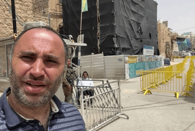 Happening now , Israeli soldier beat up an Israeli Jew who came to show solidarity with Hebron civilians after the pogrom last week